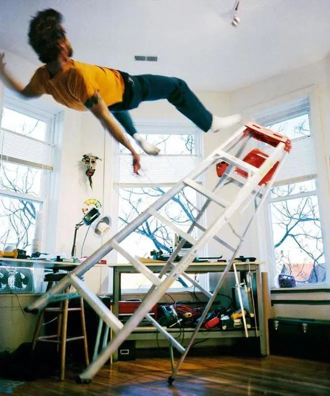 16.换灯泡出现意外摔倒的瞬间,这一摔估计伤得挺重的。