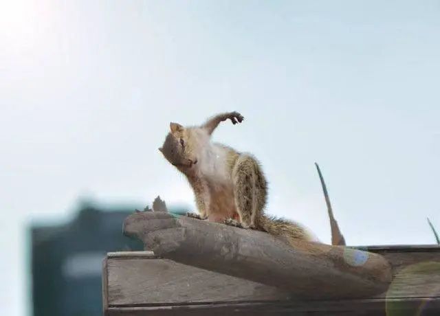 14.松鼠单手落地瞬间,帅得就像一个超级英雄。